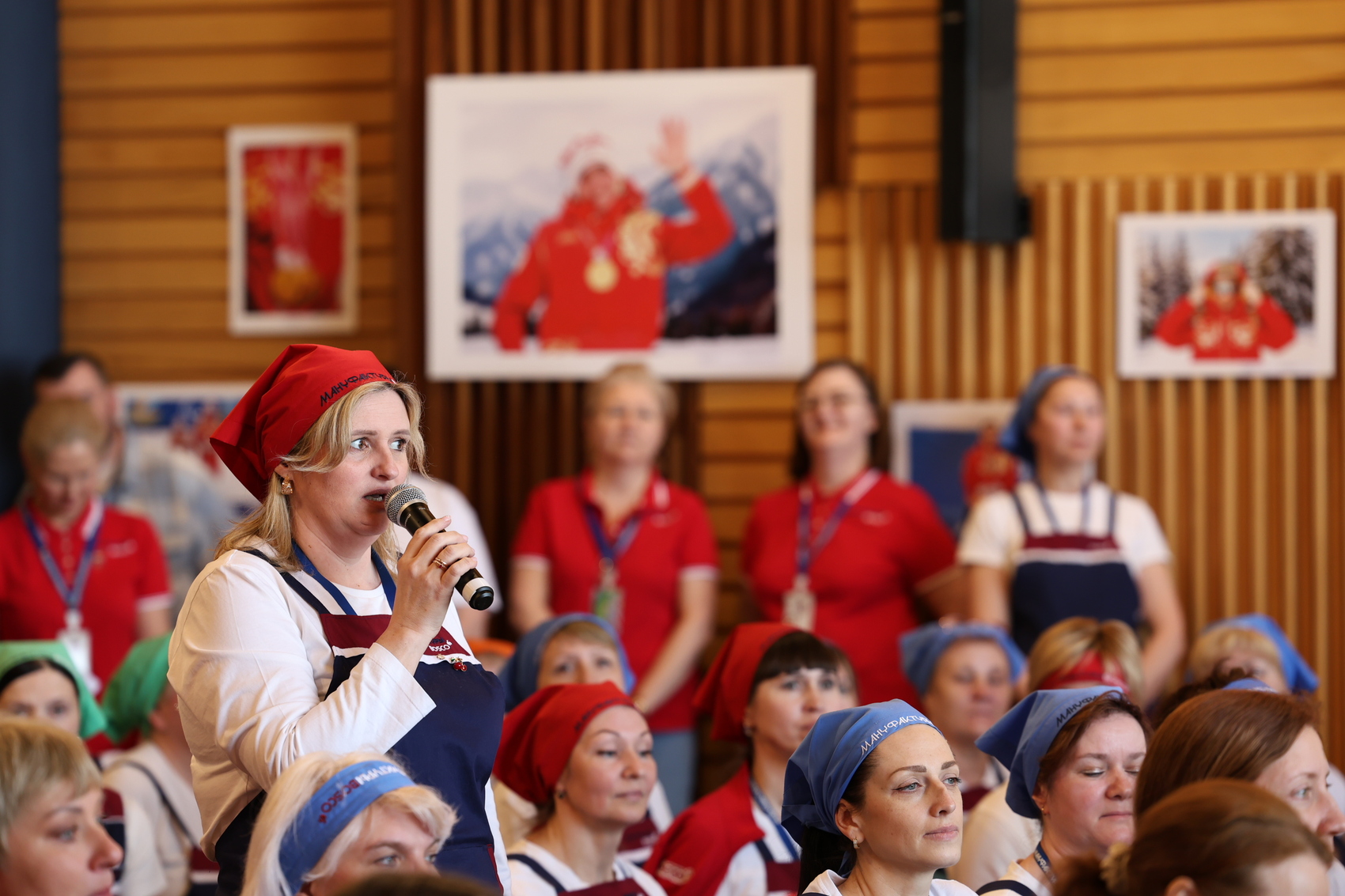 После экскурсии разговор продолжился уже в более неформальной обстановке – в демонстрационном зале прошла импровизированная пресс-конференция. Сотрудники фабрики задавали вопросы спортсменам: о форме, о выступлениях, о планах и даже о том, что можно улучшить, чтобы будущие победы были еще ярче.