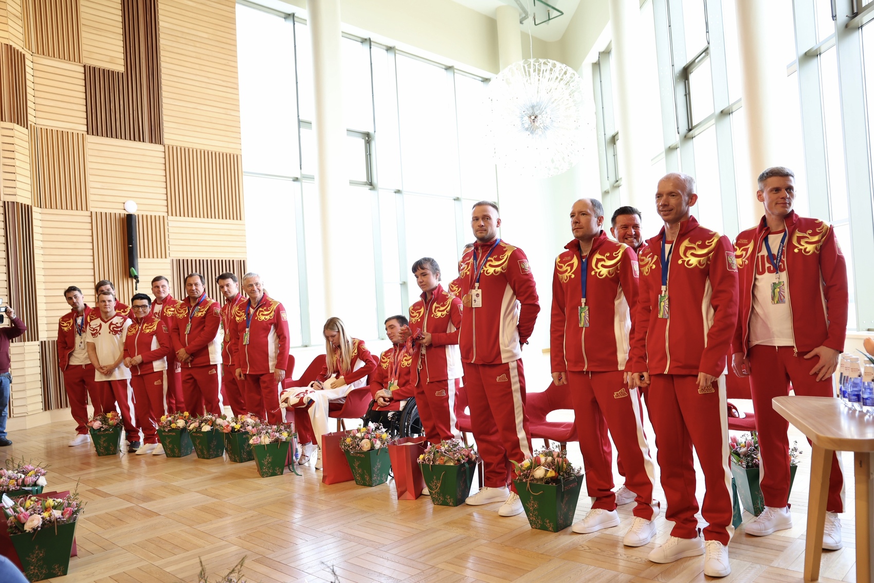 В завершение встречи паралимпийцам вручили подарки от губернатора Калужской области и бренда Bosco – белые парадные бомберы из новой коллекции. Один из них тут же превратился в памятный артефакт – его украсили автографы чемпионов. Были и цветы, и слова благодарности. Встреча получилась очень живой и настоящей. Потому что за медалями, технологиями и производственными процессами здесь ясно увидели главное – людей, которые делают общее дело и болеют за результат.